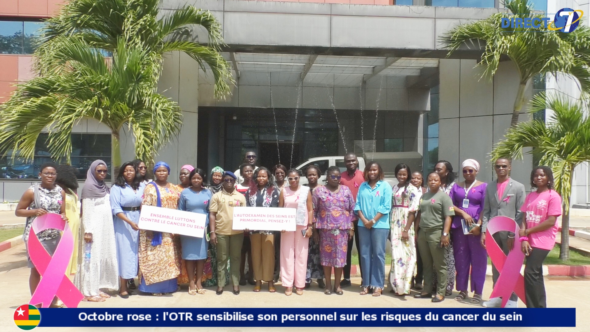 @direct7 Les tournées de sensibilisation sur la prévention du cancer du sein ne cessent de s’accroître sur toute l’étendue du territoire. Et comme toutes les années, l’OTR ne reste pas indifférent à cette sensibilisation. Le 23 octobre dernier l’Office Togolais des Recettes en collaboration avec la MLA (MedStudents Leaders Association ) a réuni tout son personnel homme et femme autour d’une séance de sensibilisation et de partage avec les sages femmes de l’association sur les risques et les mesures de prévention contre la maladie du cancer du sein.