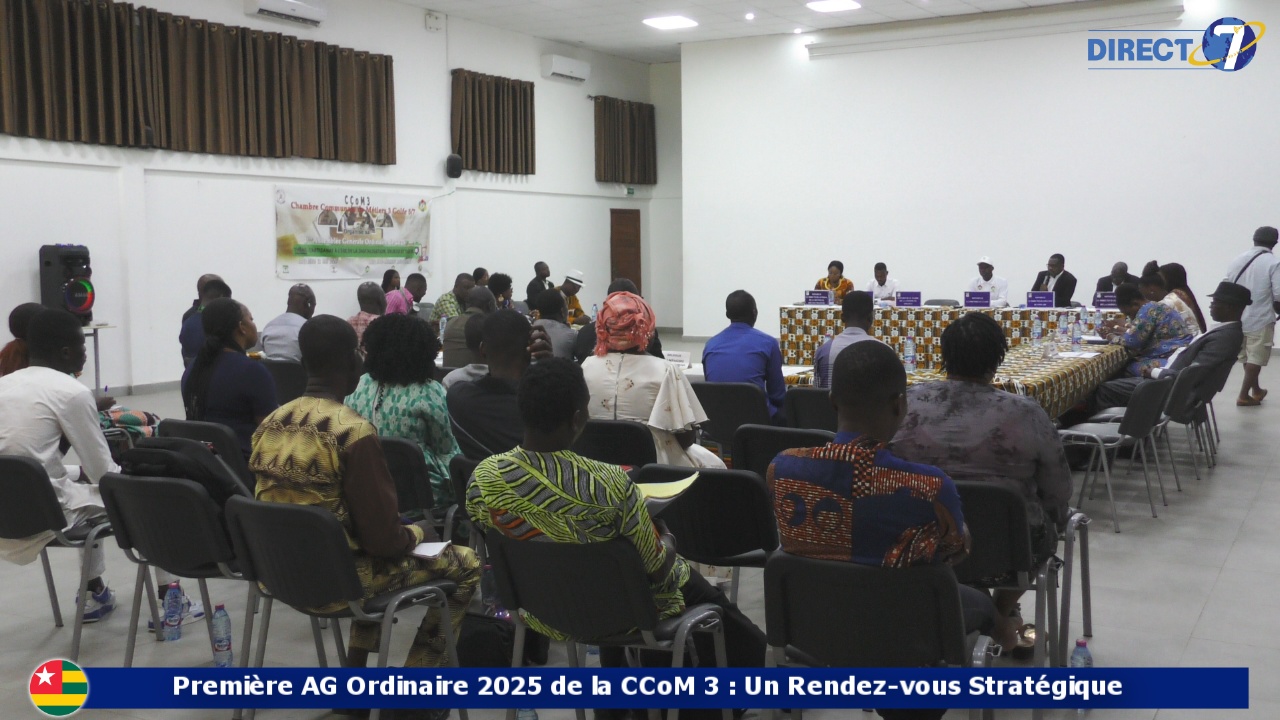 Grands reportages Première AG Ordinaire 2025 de la CCoM 3 : Un Rendez-vous Stratégique Publié il y a 11 mois sur 23 mai 2025 Par direct7tv @direct7 La Chambre Communale de Métier 3, regroupant les communes Golfes 5 et 7, a marqué un tournant important ce 22 mai 2025 avec la tenue de sa première Assemblée Générale de l’année . Réseaux Sociaux Tweet Tweet Rubriques connexes:AG CCoM 3artisanatCCoM 3direct7golfe5Golfe7 Suivant Le Togo célèbre une entrée pacifique dans la Ve République à Tsévié Ne manquez pas Fisc Quiz : L’OTR couronne ses champions de la fiscalité et relance le jeu Continuer la lecture Publicité Tu peux aimer Ayimolou Festival : une identité désormais certifiée et protégée par l’OAPI La classe politique togolaise est en deuil. Francophonie parlementaire : l’Afrique parle d’une seule voix 2ème session 2026 du CRK; focus sur les projets d’investissement Lomé célèbre « Ayimolou » : Entre tradition culinaire et ambition internationale Kara : début d’une collaboration État-Secteur privé Cliquez pour commenter Laisser un commentaire Annuler la réponseVotre adresse e-mail ne sera pas publiée. Les champs obligatoires sont indiqués avec *Commentaire * Nom * E-mail * Site web Enregistrer mon nom, mon e-mail et mon site dans le navigateur pour mon prochain commentaire. Δ Compteur visiteurs2,902,443 Publicité Facebook Publicité Actualite Populaire Grands reportagesil y a 16 heures Ayimolou Festival : une identité désormais certifiée et protégée par l’OAPI Journal Télévisé (JT)il y a 17 heures La classe politique togolaise est en deuil. Journal Télévisé (JT)il y a 20 heures Francophonie parlementaire : l’Afrique parle d’une seule voix Journal Télévisé (JT)il y a 2 jours 2ème session 2026 du CRK; focus sur les projets d’investissement Sociétéil y a 4 jours Ayimolou Festival : Un plat de 2500 F englouti en 8 minutes chrono Journal Télévisé (JT)il y a 6 jours Lomé célèbre « Ayimolou » : Entre tradition culinaire et ambition internationale Journal Télévisé (JT)il y a 1 semaine Kara : début d’une collaboration État-Secteur privé Journal Télévisé (JT)il y a 1 semaine Bénin : Paul Hounkpè lance officiellement sa campagne présidentielle Journal Télévisé (JT)il y a 3 semaines Litige foncier à Gbamakopé : quand un ex-gendarme défie la justice togolaise Journal Télévisé (JT)il y a 2 semaines Mystère : l’embouchure d’Aného fermée Journal Télévisé (JT)il y a 2 semaines Entretien routier : La SAFER et les syndicats s’unissent contre la surcharge Articlesil y a 2 semaines Lutte contre la traite : les acteurs du MNO formés à Kara Journal Télévisé (JT)il y a 2 semaines Modernisation des postes de péage : FER-Niger à l’école de la SAFER Journal Télévisé (JT)il y a 4 semaines JIF 2026 : compassion international célèbre les femmes rurales à Kara Journal Télévisé (JT)il y a 1 semaine Togo-Gabon : un axe stratégique pour contrer les réseaux criminels Journal Télévisé (JT)il y a 2 semaines CAN 2025 : Patrice Motsepe appelle au respect des instances